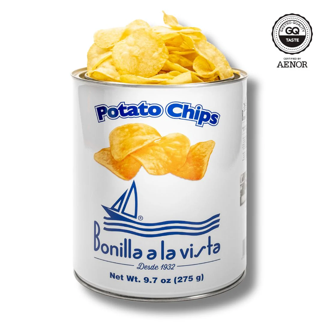 Bonilla a la Vista Patatas Fritas or potato chips are world famous for good reason. Carefully selected potatoes, top quality olive oil and sea salt are the perfect combination. They are a staple at bars around Spain, and have developed a cult following in the process. Add them to your kitchen to share at your next gathering, or keep them all for yourself!